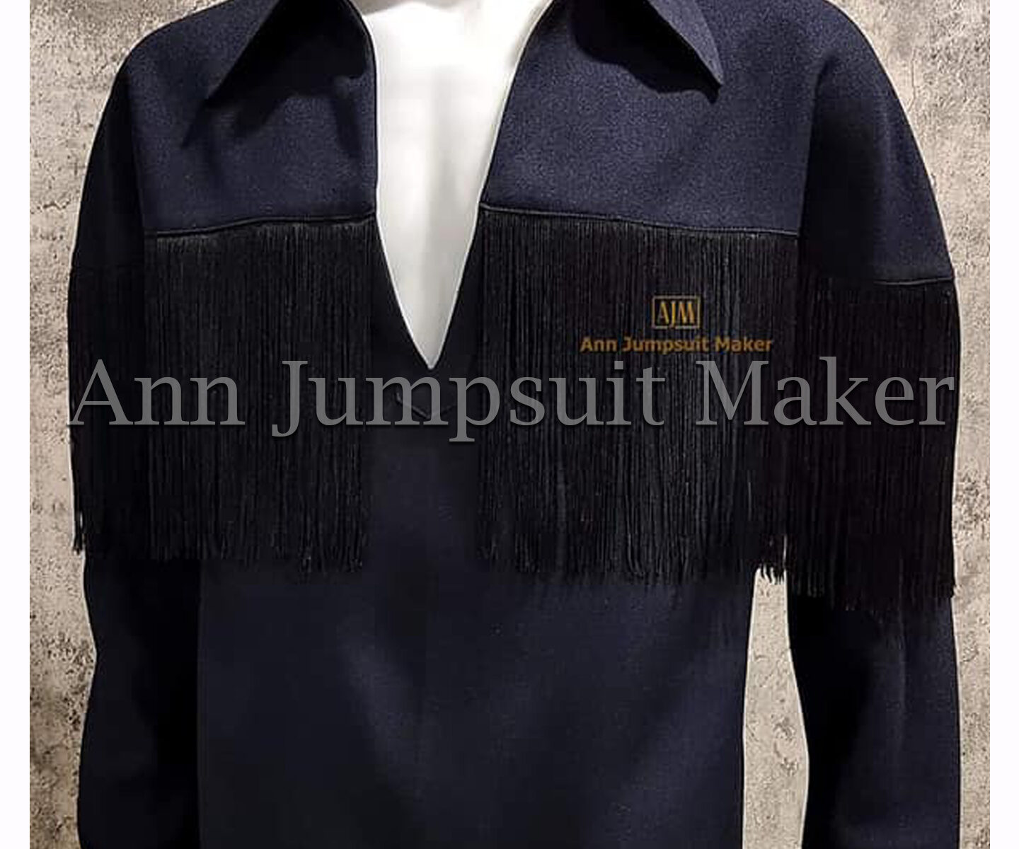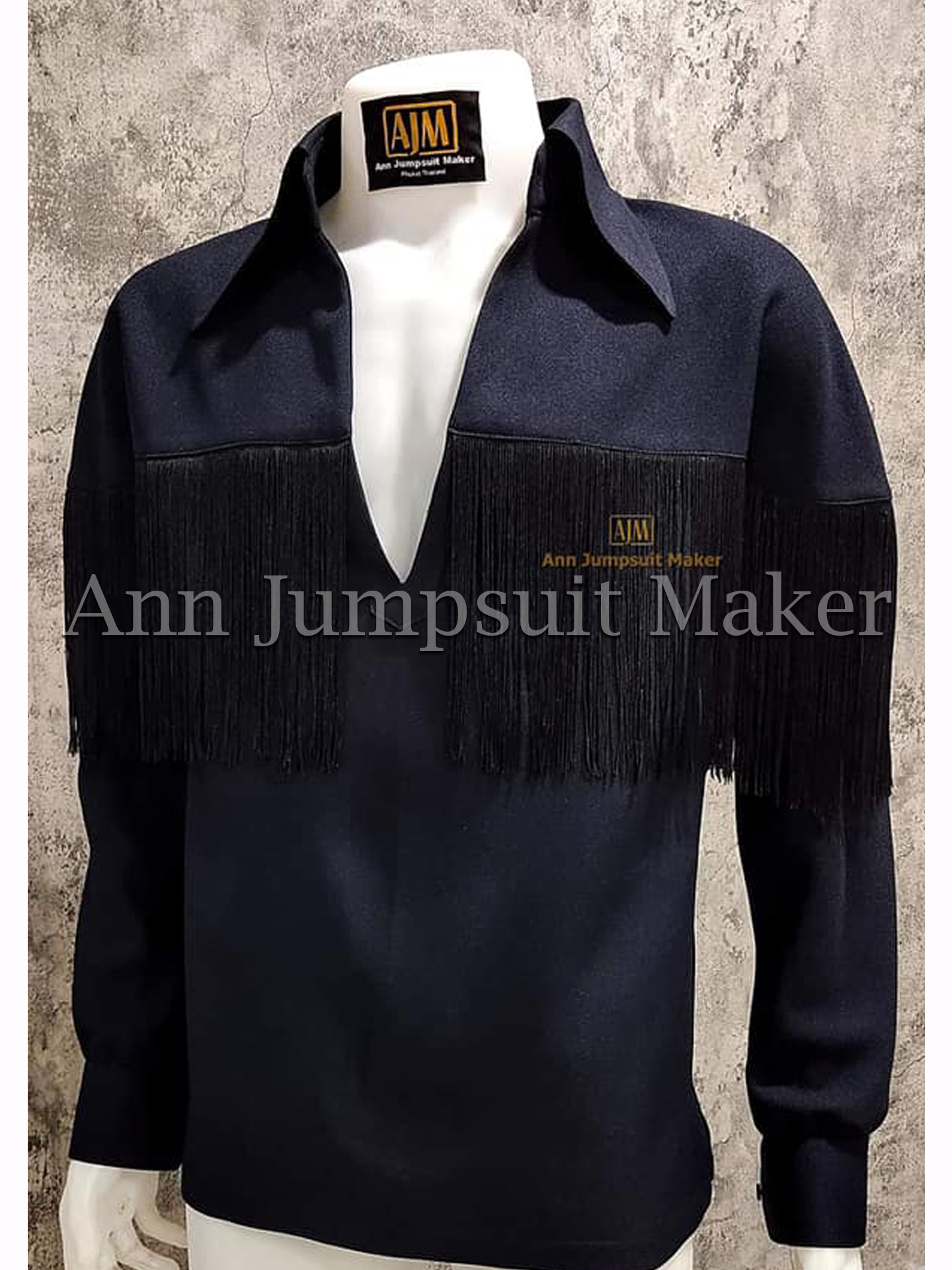 Band Shirt Navy Blue Black Fringe