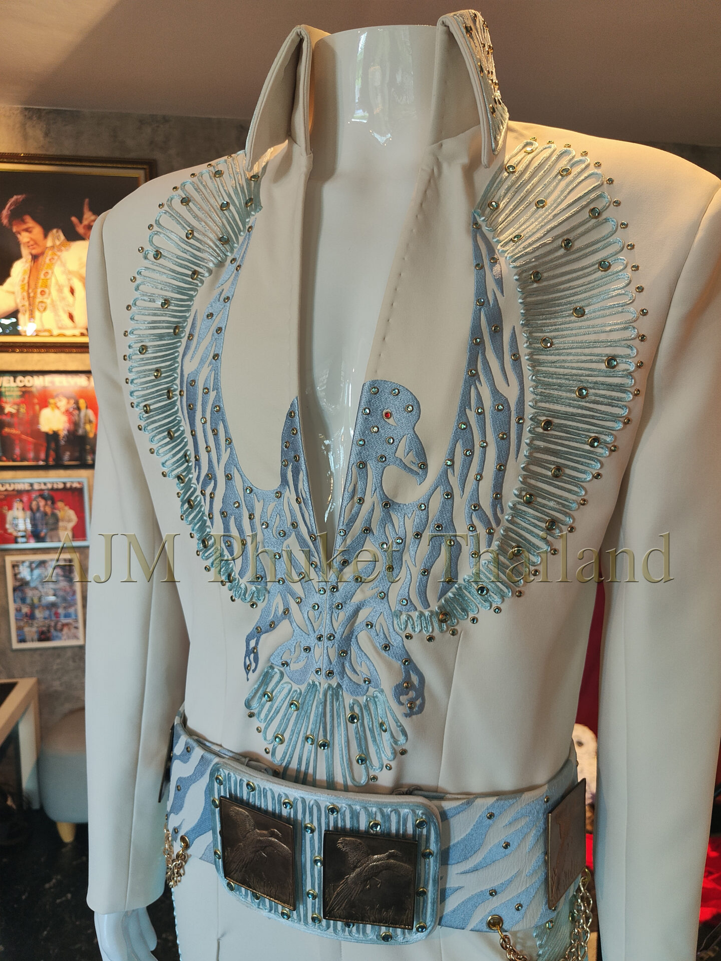 Light Blue Phoenix Embroidery Jumpsuit and belt