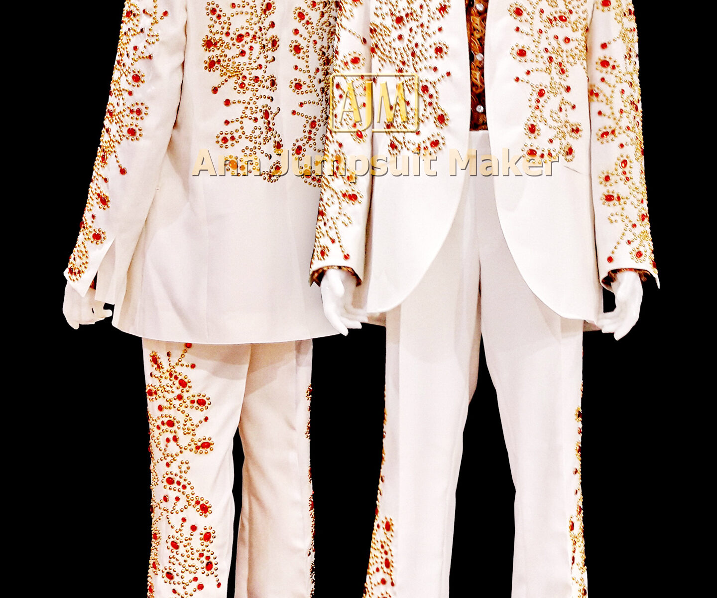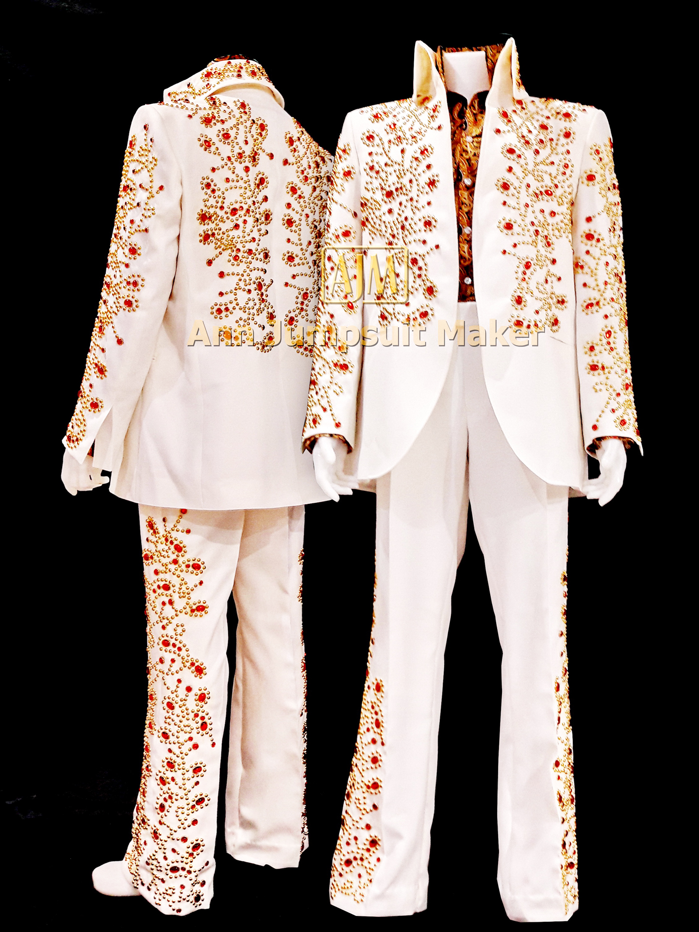 Spanish Flowers Red stones White 2 pieces suit